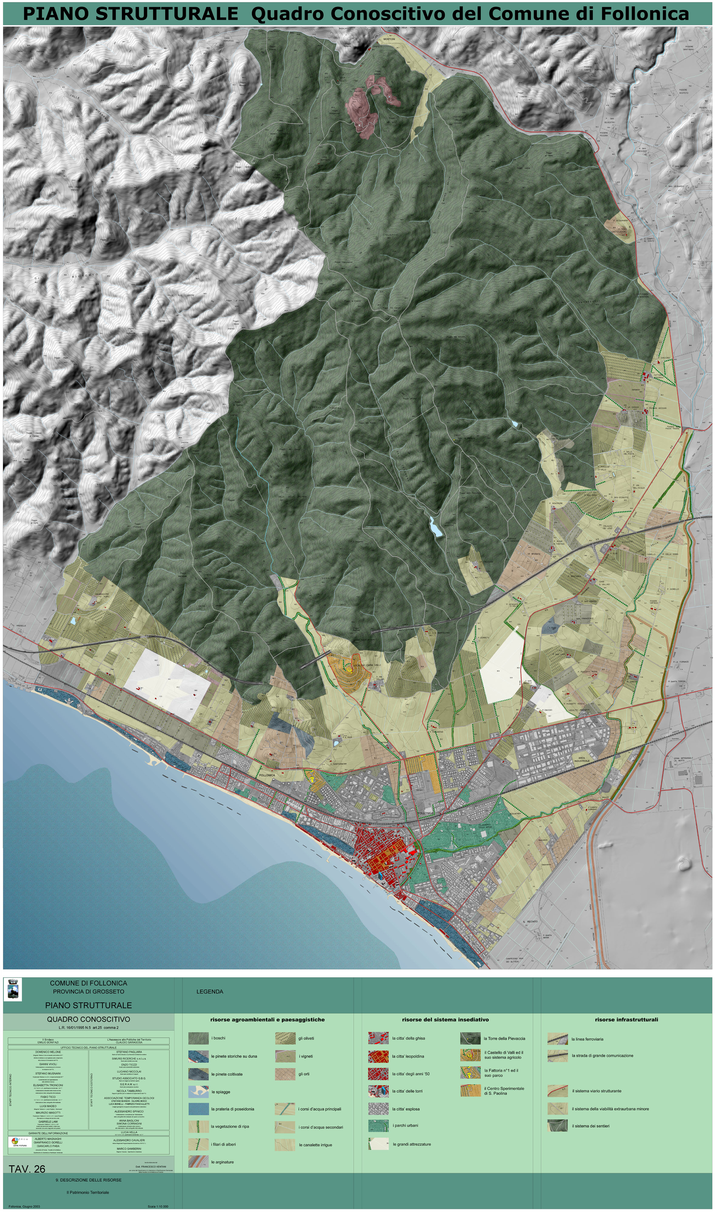 Documenti 1.a.01 Norme e Tavole VigentiCerca in 1.a.01 Norme e Tavole Vigenti PIANO STRUTTURALE Norme e Tavole Vigenti - File pdf 1,01 MB Elenco delle Tavole Vigenti - File pdf 19,48 kB TAV. 26 Il patrimonio territoriale - File image/jpeg 1,99 MB TAV. 27 Le criticità territoriali - File pdf 5,27 MB TAV. 28 Sistemi Ambientali e Sub Sistemi Territoriali - File pdf 7,48 MB TAV. 29 I Sistemi Ambientali - File pdf 4,23 MB TAV. 30a I Sistemi e i Sub Sistemi - File pdf 4,45 MB TAV. 30b I Sistemi Infrastrutturali - File pdf 29,84 MB TAV. 31 Unità Territoriali Organiche Elementari - File pdf 4,22 MB TAV. 32 Le Invarianti Strutturali e lo Statuto dei Luoghi - File pdf 29,56 MB Delibera del Consiglio Comunale n. 67 del 22 luglio 2005 - File pdf 192,33 kB1.a.02 Quadro ConoscitivoCerca in 1.a.02 Quadro Conoscitivo TAV. 1 Il P.I.T. della Regione Toscana - File pdf 6,35 MB TAV. 2 Il P.T.C. della Provincia di Grosseto - File pdf 6,00 MB TAV. 3 Il P.T.C. della Provincia di Grosseto Il Sistema Paesistico e i valori del P.T.C. Le Strategie - File pdf 5,62 MB TAV. 4 La Pianificazione Sovracomunale - File pdf 2,73 MB TAV. 5 Storicizzazione della Pianificazione Comunale - File pdf 7,02 MB TAV. 6 Storicizzazione della Pianificazione Comunale - File pdf 3,55 MB TAV. 10a Vincoli Sovraordinati Idrogeologico e forestale, paesaggistico, monumentale, storico artistico e archelogico - File pdf 2,61 MB TAV. 10b Vincoli Sovraordinati il Vincolo Paesistico (ex 431/1985) - File pdf 1,97 MB TAV. 10c Vincoli Sovraordinati il Rischio Idraulico - File pdf 4,49 MB TAV. 10d Vincoli Sovraordinati Le aree Protette (SIR ZPS) - File pdf 4,29 MB TAV. 11a I caratteri Geologici Geologia - File pdf 6,47 MB TAV. 11b I caratteri Geologici Litotecnica - File pdf 6,25 MB TAV. 11c I caratteri Geologici Permeabilità - File pdf 5,54 MB TAV. 12 Intrusione Salina - File pdf 5,29 MB TAV. 13a Orografia e Idrografia - File pdf 9,92 MB TAV. 13b Le Esposizioni - File pdf 4,90 MB TAV. 13c La Clivometria - File pdf 7,87 MB TAV. 13d La Geomorfologia - File pdf 4,17 MB TAV. 13e La Vulnerabilità Geologica - File pdf 5,51 MB TAV. 13f La Vulnerabilità Idraulica - File pdf 5,52 MB TAV. 13g La Pericolosità Idraulica - File pdf 5,24 MB TAV. 14 Le Formazioni Forestali - File pdf 3,93 MB TAV. 15 Le Formazioni Marine - File pdf 11,34 MB TAV. 16 Uso del Suolo al 1978 del territorio aperto - File pdf 3,39 MB TAV. 17 Uso del Suolo attuale del territorio aperto - File pdf 3,43 MB TAV. 18 La Crescita Urbana - File pdf 3,19 MB TAV. 19 Il Sistema delle Aziende Agrarie - File pdf 5,56 MB TAV. 20a Le Funzioni della città - File pdf 5,29 MB TAV. 21a La distribuzione della Struttura Turistica - File pdf 2,66 MB TAV. 22a La distribuzione della popolazione per fasce d'età (0 5; 6 14; 15 24; oltre 64) - File pdf 9,49 MB TAV. 22b La distribuzione della popolazione per fasce d'età (25 64) - File pdf 2,52 MB TAV. 22c La distribuzione della popolazione per nuclei familiari - File pdf 4,81 MB TAV. 23a La distribuzione della popolazione per provenienza (centro nord; centro sud; Sicilia e Sardegna) - File pdf 4,78 MB TAV. 23b La distribuzione della popolazione per provenienza (comunitari ed extracomunitari) - File pdf 5,90 MB TAV. 23c La distribuzione della popolazione per provenienza (follonichesi; dalle colline metallifere; dalla val di Cornia; grossetani e Toscani) - File pdf 5,95 MB TAV. 24 Le infrastrutture della viabilità - File pdf 4,61 MB TAV. 25 Le infrastrutture dei servizi - File pdf 4,24 MB