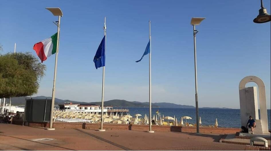 Insieme all'istallazione delle bandiere ospita il Portale del Mistero, opera di Riccardo Grazzi del 1999. Alcuni metri di binario sono stati lasciati visibili per ricordare il ferro proveniente dalla vicina Elba e la spola con la fabbrica della ghisa effettuata da piccoli vagoni.